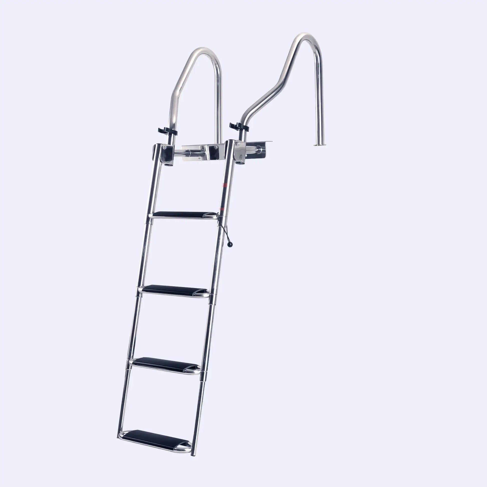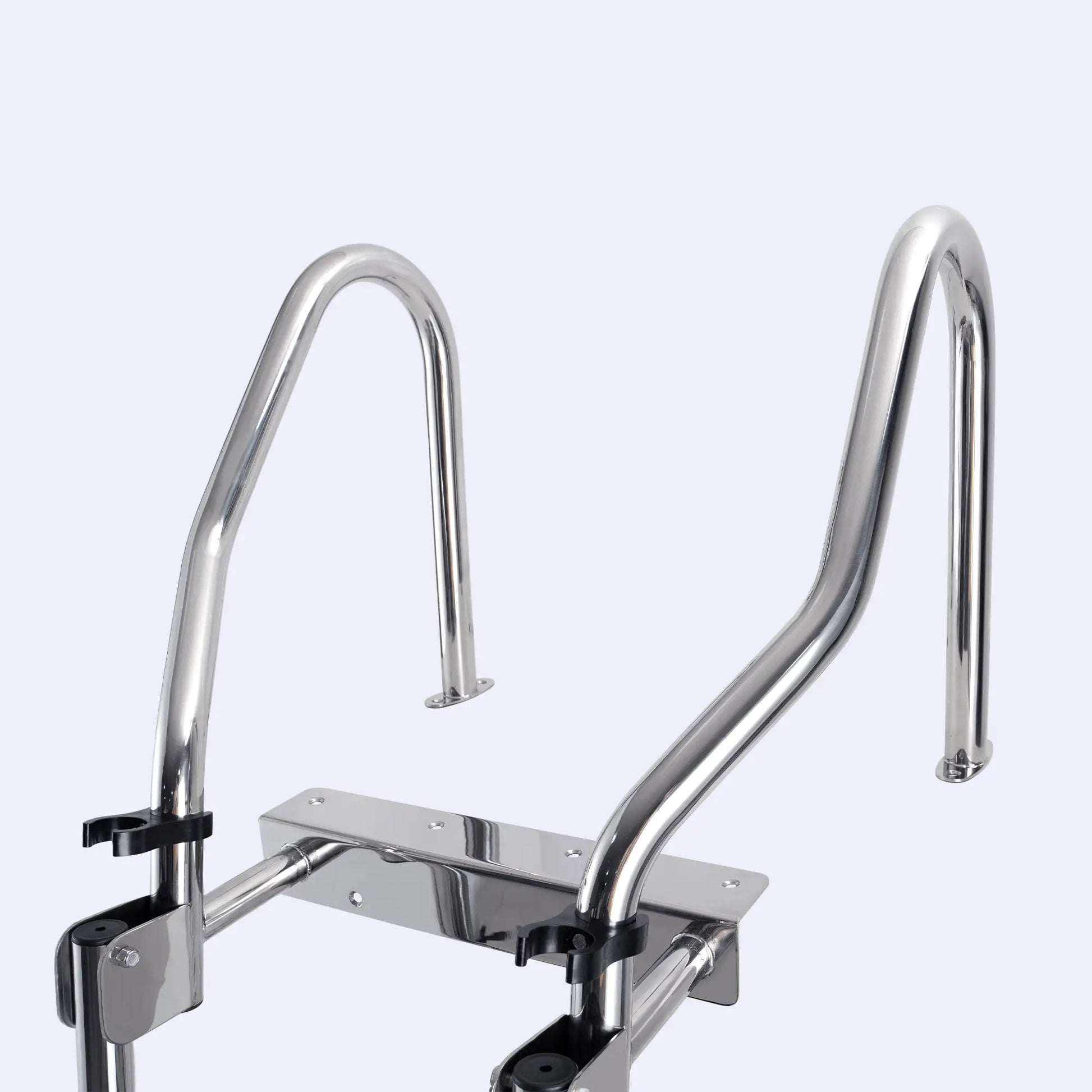 Grip-Friendly Curved Handrail: Designed to fit the natural curve of your hand, the ergonomic handle reduces wrist strain by 25% over straight ladders. It allows swimmers and divers a firmer, comfortable hold, making boarding easy in stormy waters.